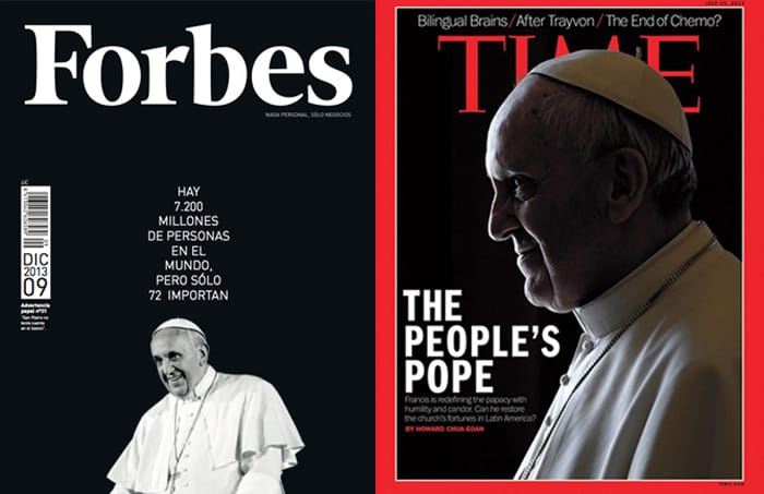 Esta es la tercera vez que la revista escoge a un Papa como personaje del año. Antes fueron Juan Pablo II, en 1994, y Juan XXIII en 1962. En el reportaje de Time, Howard Chua-Eoan y Elisabeth Dias subrayan que Bergoglio además de atención «ha capturado la esperanza de los millones de personas que habían abandonado toda esperanza en la Iglesia”. Ese cambio respecto de sus predecesores también es noticiable para los dos periodistas “en cuestión de meses, Francisco ha elevado la misión alentadora de la Iglesia -como servidora y confortadora de los necesitados- por encima de la doctrina, tan importante para sus predecesores, Juan Pablo II y Benedicto XVI”.