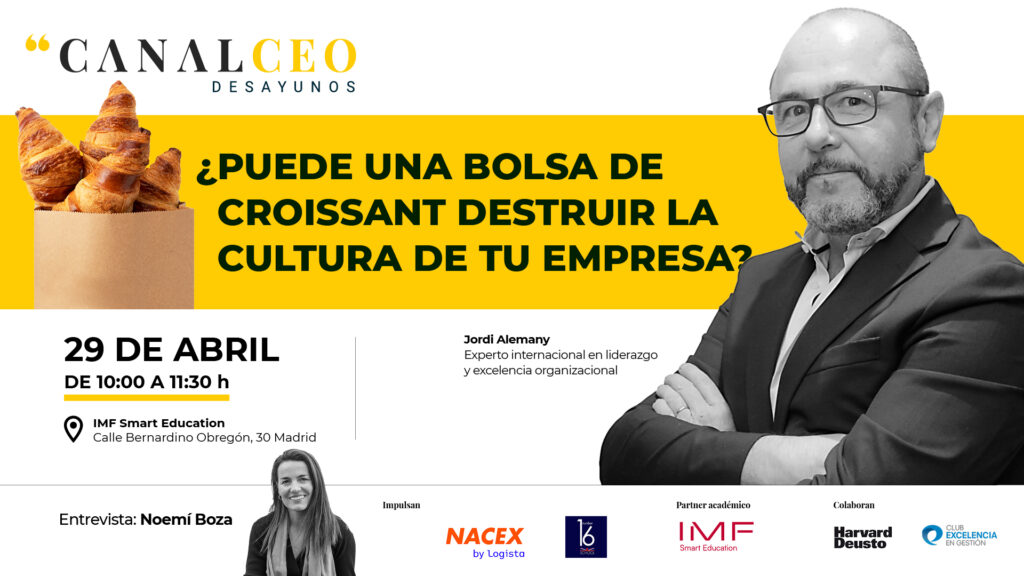 Cuando se ostenta un puesto de responsabilidad, las decisiones, por simples que parezcan, tienen un enorme impacto en aquellos que te rodean, especialmente en términos de construcción de confianza y compromiso. Una simple bolsa de croissants puede hacernos cruzar esa delgada línea que separa al líder del jefe. Para ello, en primicia para Canal CEO, Jordi Alemany presentará en el próximo Desayuno Canal CEO su último libro, “Liderazgo Imperfecto”. Una obra que desmonta falsos mitos, absurdos estereotipos y obsoletos paradigmas sobre el liderazgo a través de reflexiones, referencias, historias o ejemplos para entender los atributos, valores, aptitudes y actitudes del líder de esta nueva era.