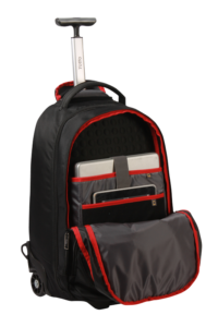 Mochila con ruedas ideal para viajes de negocio, gracias a sus múltiples compartimentos que permiten llevar tanto Tablet como portátil en su interior de forma protegida. El tirador es telescópico y las asas se pueden guardar en el interior cuando se está utilizando a modo de carro.