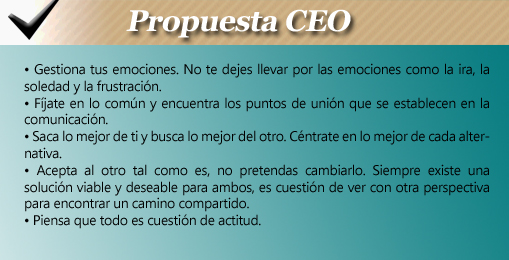 ¿Cómo te puedes sentir? Puede que algo nervioso, a veces confuso por los derroteros que pueda llevar la conversación. Sin embargo, si tienes claro qué es lo que quieres y cómo lo puedes conseguir y si sabes qué mensajes alternativos quieres transmitir es más fácil llegar al otro. Ten en cuenta que la elección debe ser compartida por ambos. Ya sabes que el otro tiene sus ideas, sus alternativas, sus opiniones y que merece ser escuchado. Trata de encontrar lo mejor de su discurso.