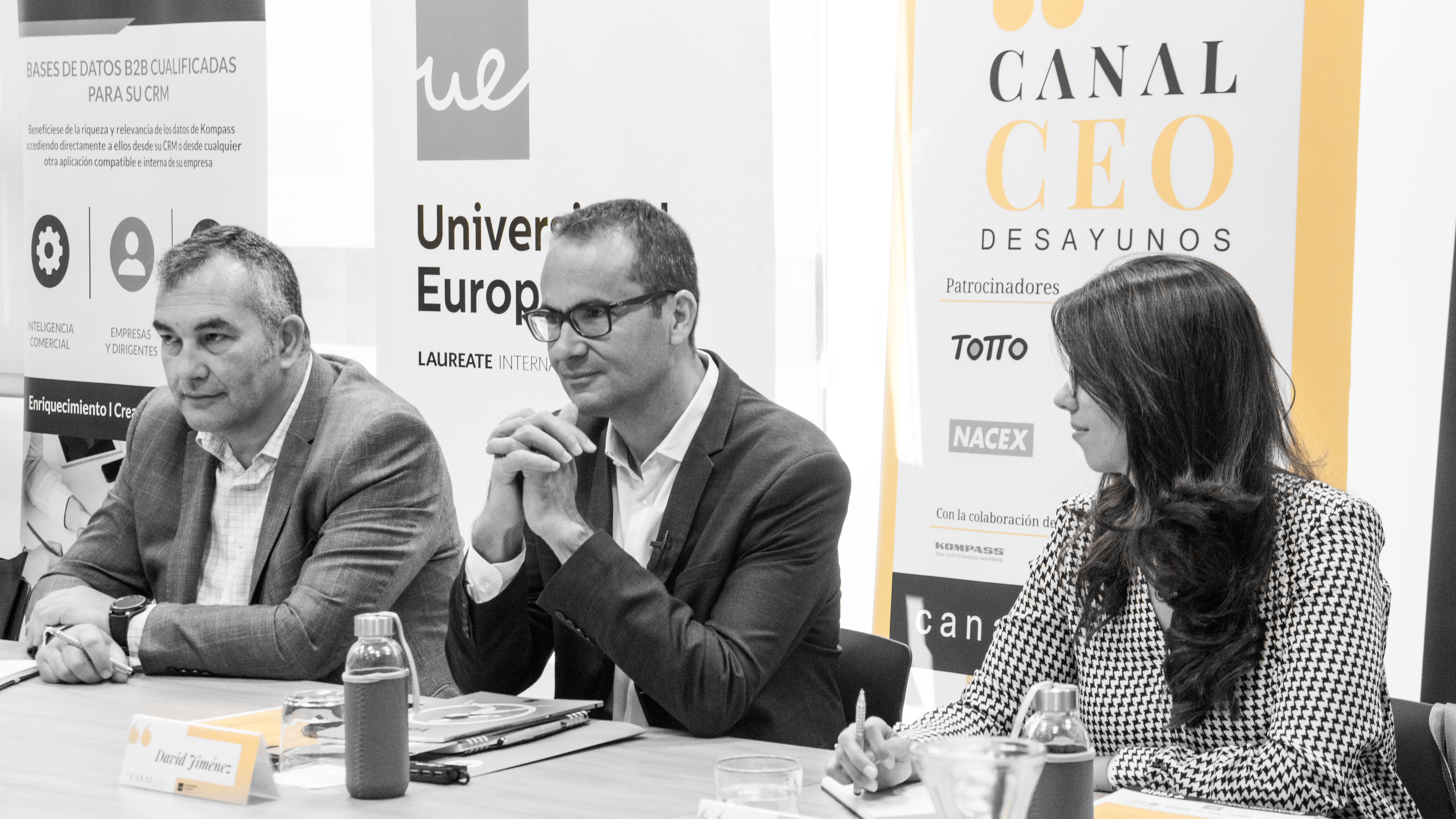 David Jiménez, exdirector de El Mundo, ha protagonizado el Desayuno Canal CEO en la Universidad Europea de Madrid. El encuentro, desarrollado gracias al apoyo de Totto, United, Nacex, Atento –y la colaboración de Kompass Spain e Inred– ha reunido a 22 profesionales del sector.