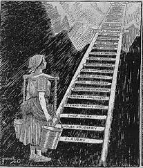 «The sky is now the limit», es el título de la viñeta que el diario «The New York Times» publicó en 1920, en la que aparece una mujer cargada con un yugo y dos cubos al pie de una escalera, en la que en cada peldaño se muestran los diferentes desempeños que desde la esclavitud a la presidencia podía alcanzar. El autor, Bushnell representaba así la 19ª enmienda de la Constitución que permitía el voto de la mujer. Una pionera preparada para un ascenso sin límites, pero aguantando el peso que dificulta el camino hacia el mismo.