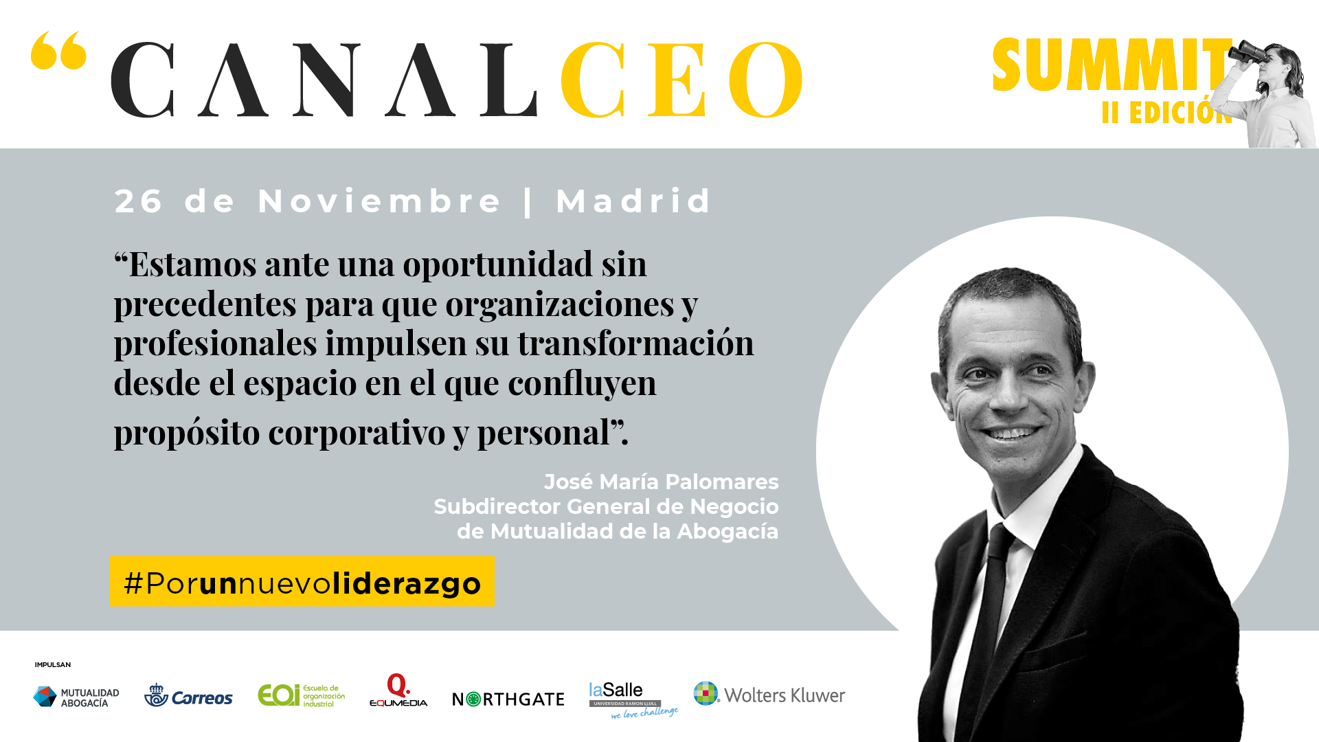 José María Palomares es miembro del Comité Ejecutivo y subdirector general de Negocio de la Mutualidad de la Abogacía. Así mismo es miembro de los Consejos Asesores de Multinacionales por Marca España y del Instituto de Gobernanza Empresarial. Ha sido director general de la Fundación Mutualidad Abogacía. Previamente ha ocupado distintas posiciones directivas en compañías multinacionales como Telefónica, ING o Laureate International Universities.