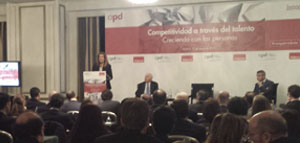 La ministra de empleo y Seguridad Social, Fátima Bañez expresó la necesidad de fomentar la formación profesional en pymes y microempresas, en la jornada sobre «Competitividad a través del talento», organizada por la APD y Adecco.